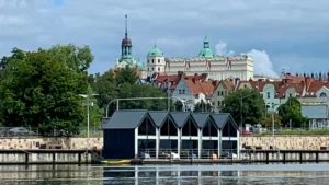 Mit dem Kajak auf der Oder durch Stettin entlang historischer Gebäude wie dem Stettiner Schloß, Hakenterrassen und Nationalmuseum.